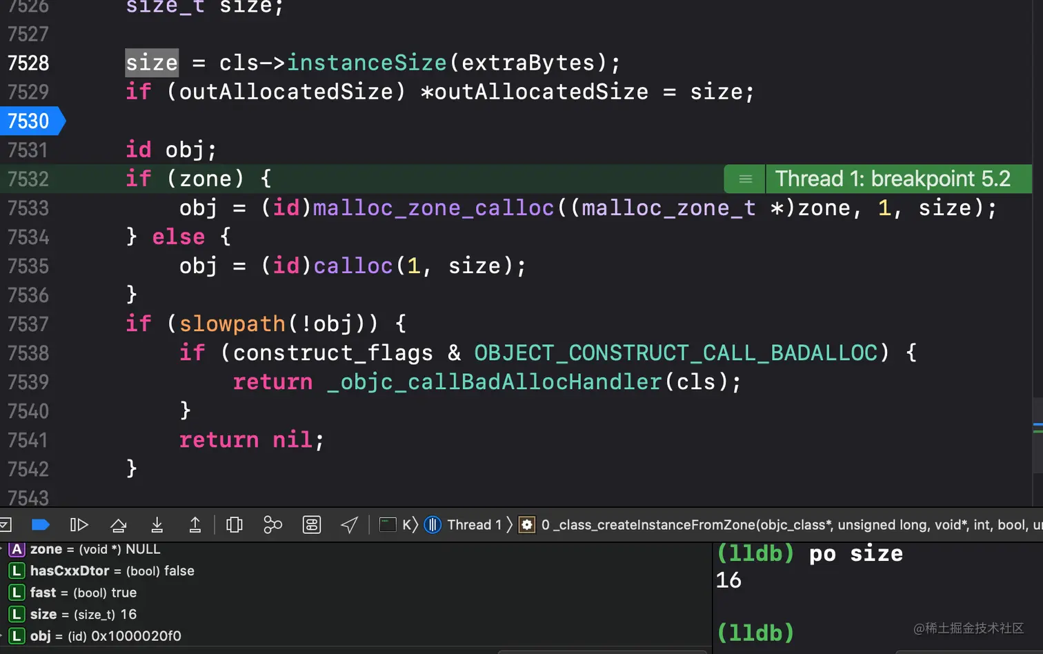 我们看到这个方法实现的时候,只有size这个是有关内存大小的,打印size