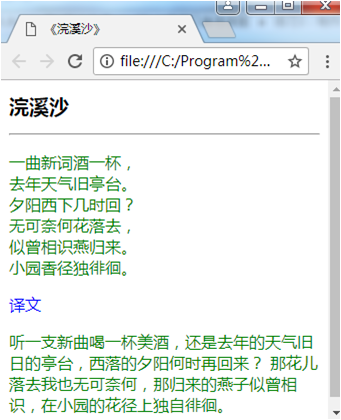 使用类选择器设置正文和译文内容字体颜色为绿色
