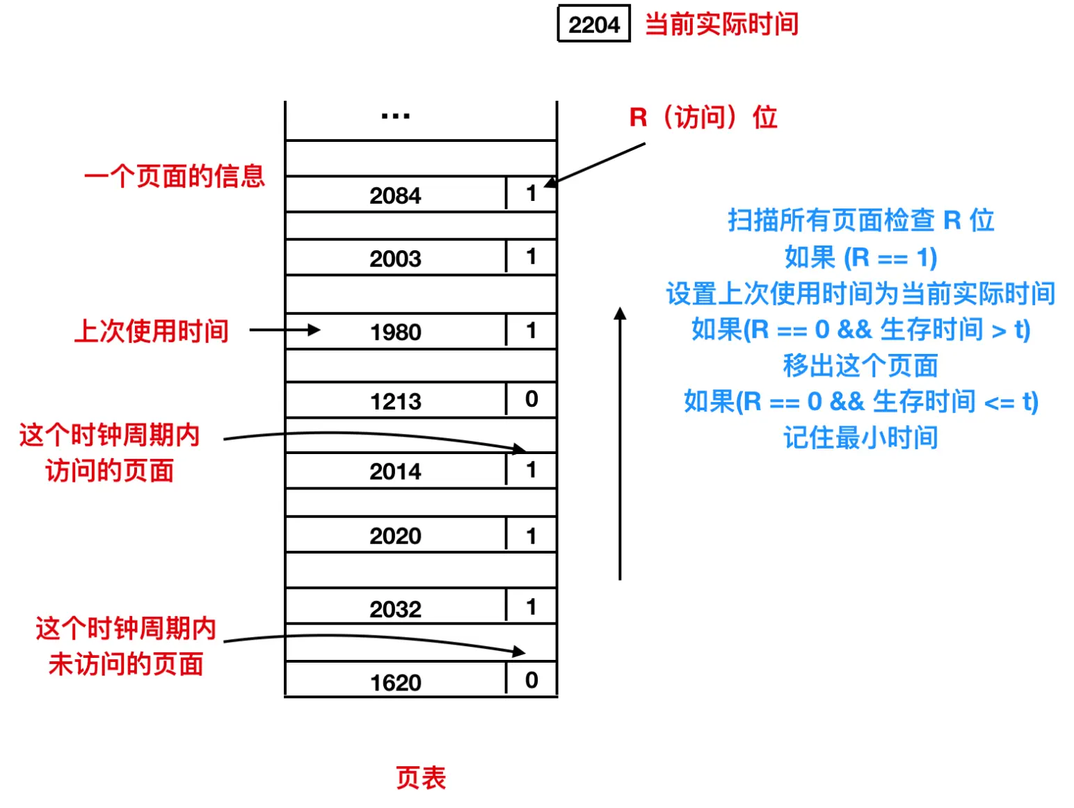 对于第二种情况,所有的页面都在工作集中,否则将至少调度了一个写操作。由于缺乏额外的信息,最简单的方法就是置换一个未被修改的页面来使用,扫描中需要记录未被修改的页面的位置,如果不存在未被修改的页面,就选定当前页面并把它写回磁盘。