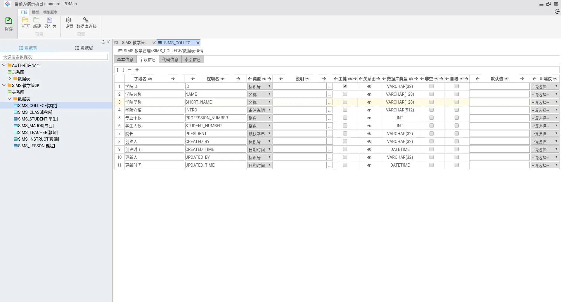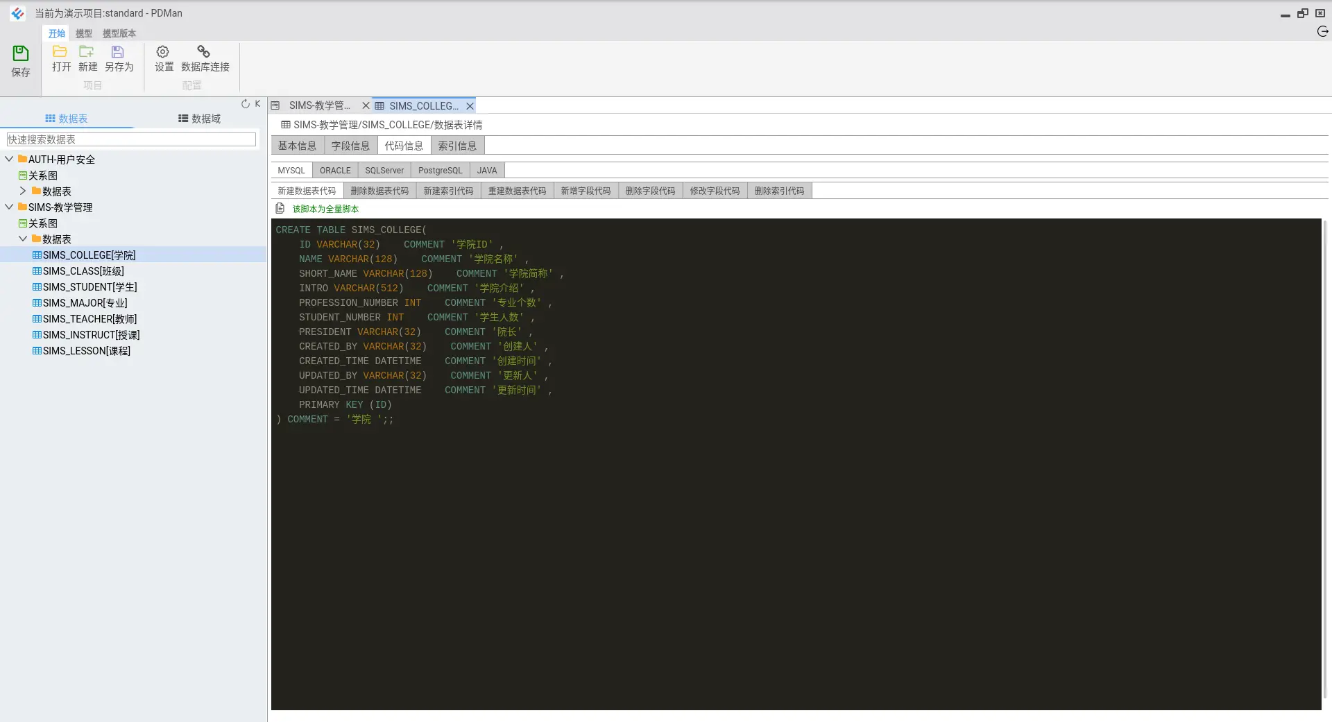 9.数据库模型设计直接同步至数据库。