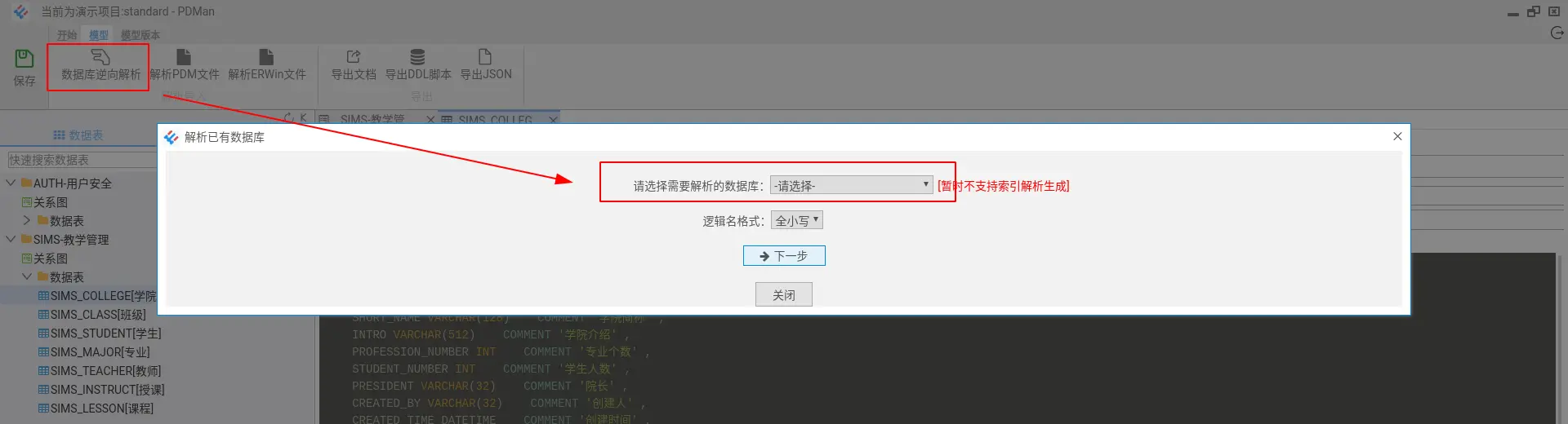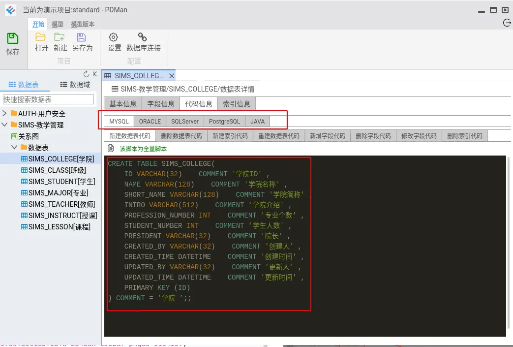 8.数据库模型版本管理功能,在版本变动之后,可直接生成数据表结构的DDL语句。