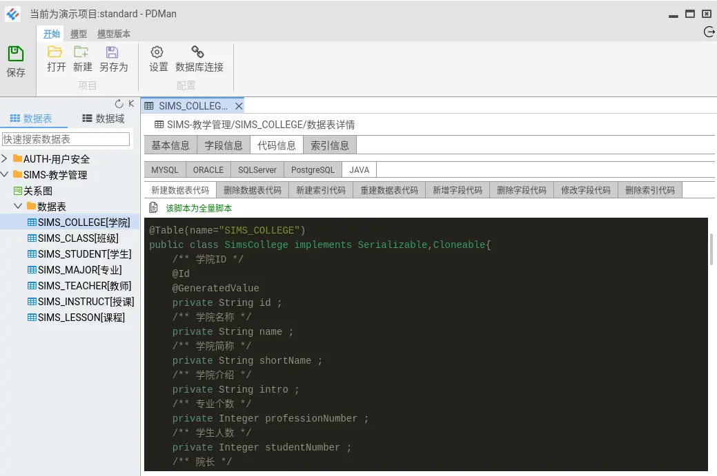 5.对开发极其友好,可生成各种数据库以及编程语言的模型类。
