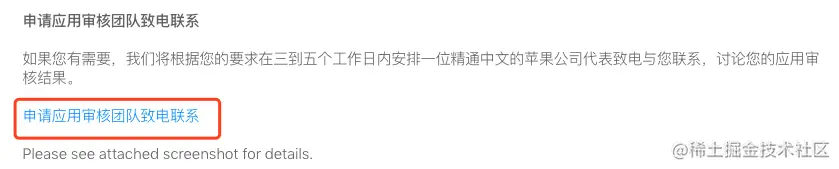如果您有需要,我们将根据您的要求在三到五个工作日内安排一位精通中文的苹果公司代表致电与您联系,讨论您的应用审核结果。