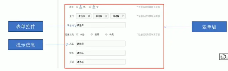 在网页中使用表单目的是收集用户的信息,常用在个人信息页面、注册页面等。