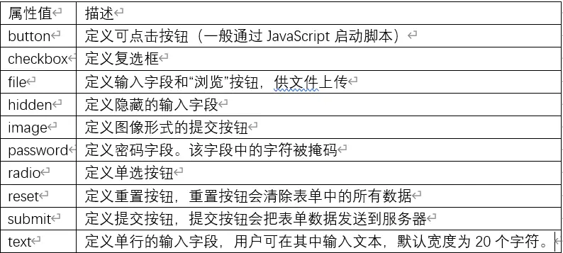 type属性的属性值: