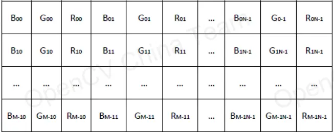 - 图像数据在计算机内存的存储顺序为自左向右,自上向下,即图像的左上角为原点