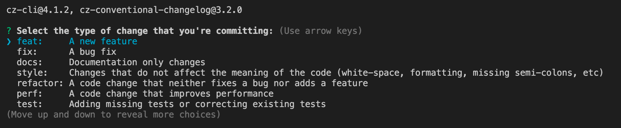 这样我们通过npm run commit进行提交,同时快捷选择规范的commit提交信息模板了