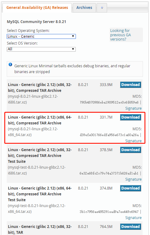本次展示的是mysql-8.0.21-linux-glibc2.12-x86_64.tar.xz
