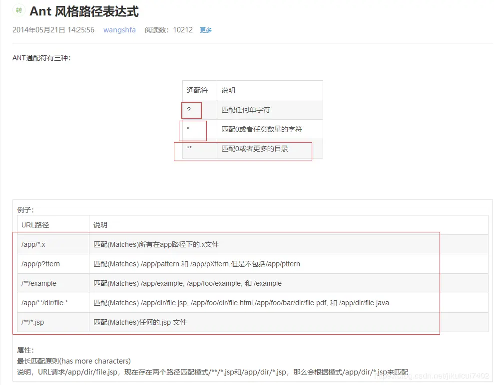 PathMatchingResourcePatternResolver支持Ant风格的路径解析。下面简单概述下ant风格路径.