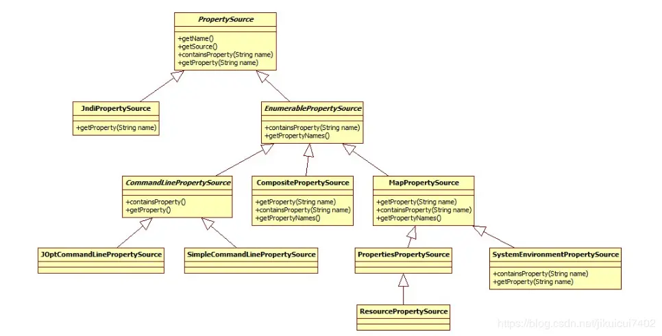 PropertySource接口代表了键值对的Property来源。继承体系: