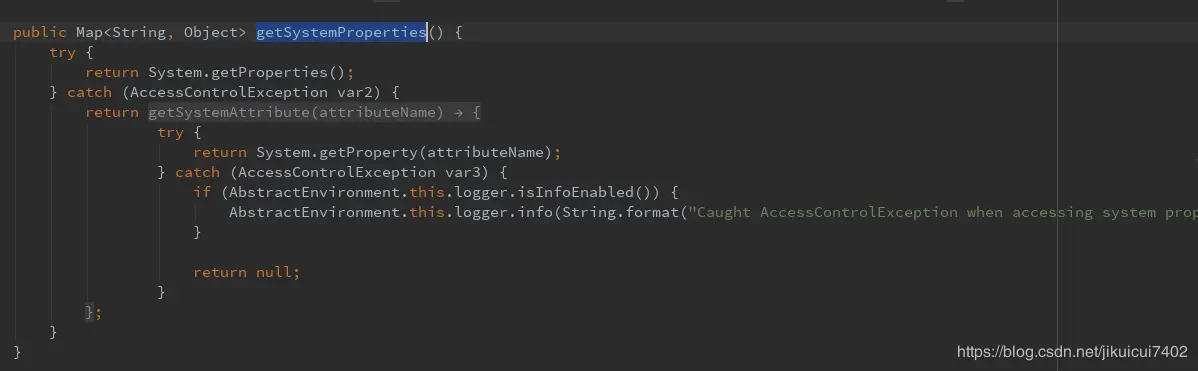 AbstractEnvironment.getSystemProperties:(此方法在org.springframework.core.env.AbstractEnvironment里面)