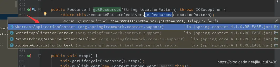 getResources(作者写成getResource,一字之差缪之千里),在AbstractApplicationContext.getResources: