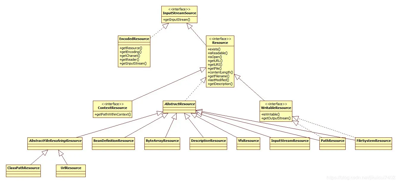 EncodedResource扮演的其实是一个装饰器的模式,为InputStreamSource添加了字符编码(虽然默认为null)。这样为我们自定义xml配置文件的编码方式提供了机会。