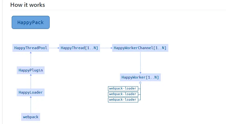 - 原理: 每次webpack解析一个模块,HappyPack会将它及它的依赖分配给worker线程中
