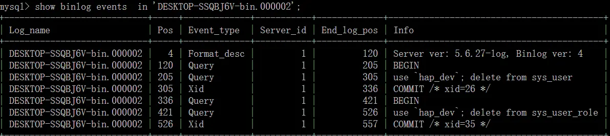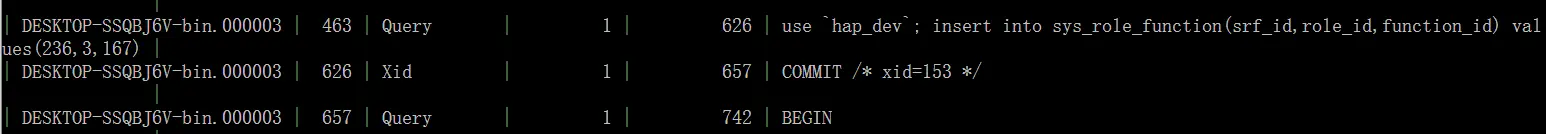 mysqlbinlog.exe --stop-position=657 --database=hap_dev ../data/DESKTOP-SSQBJ6V-bin.000003 | mysql -uroot -proot