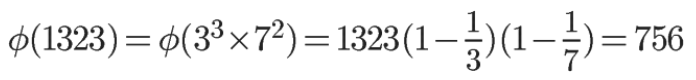 这就是欧拉函数的通用计算公式。比如,1323 的欧拉函数,计算过程如下:
