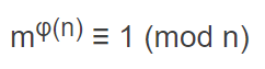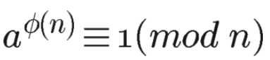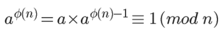 如果两个正整数a和n互质,则n的欧拉函数 φ(n) 可以让下面的等式成立: