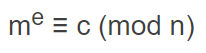 假设鲍勃要向爱丽丝发送加密信息m,他就要用爱丽丝的公钥 (n,e) 对m进行加密。这里需要注意,m必须是整数(字符串可以取ascii值或unicode值),且m必须小于n。