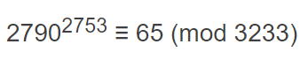 爱丽丝拿到鲍勃发来的2790以后,就用自己的私钥(3233, 2753) 进行解密。可以证明,下面的等式一定成立: