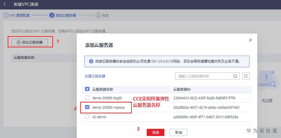 3、添加需要通过API网关访问的CCE工作负载的实例节点。可添加多个实例,API网关支持负载均衡功能。