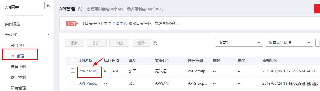 1、登录控制台,进入API网关服务。