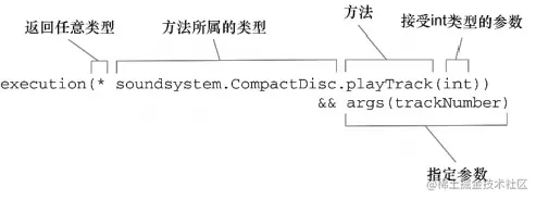 <aop:pointcut id="trackPlayed" expression="execution(* soundsystem.CompactDisc.playTrack(int)) and args(trackNumber)" />