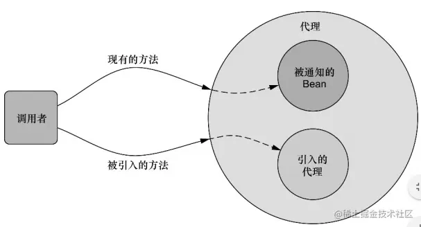 直到应用需要被代理的bean时,Spring才创建代理对象。如果使用的是ApplicationContext的话, 在ApplicationContext从BeanFactory中加载所有bean的时候,Spring才会创建被代理的对象。因为Spring运行时才创建代理对象,所以我们不需要特殊的编译器来织入Spring AOP的切面。