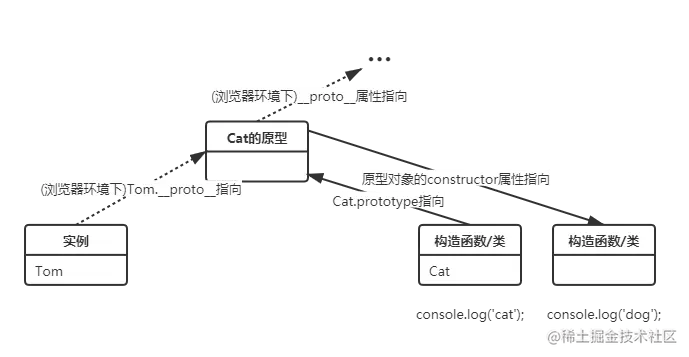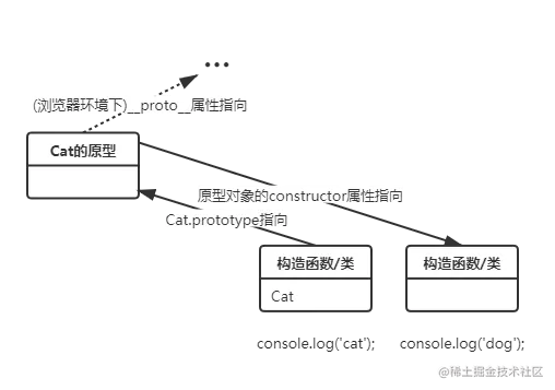 答案是cat。这个问题很奇怪,因为平常根本不会有这种写法,但不妨碍我们来理解js中面向对象编程的实现方式。要搞清楚输出为什么是是cat就要理解原型(prototype)、构造函数(constructor)、实例(instance)、类(class)之间的关系。
