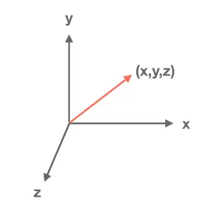 在OpenGL中,我们总是使用向量来表示带方向的量,例如在3D坐标系中,从原点到一个任意点(x,y,z)的一条带箭头的线段,它有两个重要的值:方向,数量(也可以理解为是长度).