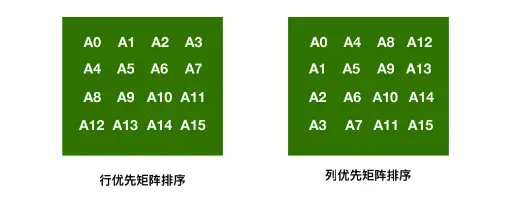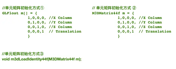 在上边定义向量的参考代码里,我们看到OpenGL中,更多倾向使用一维数组来定义,这样做的原因在于OpenGL使用的是列优先矩阵排序的约定