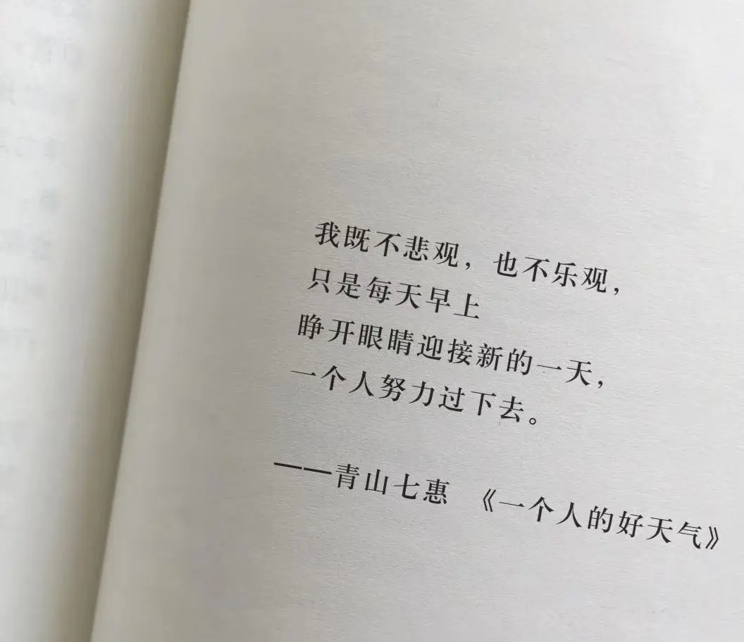 我既不悲观,也不乐观,只是每天早上睁开眼睛迎接新的一天,一个人努力过下去