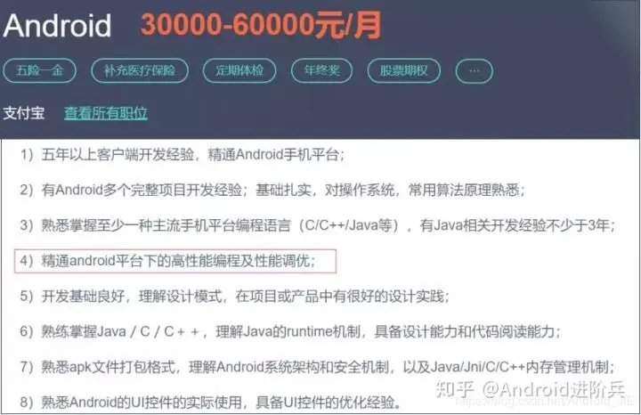 在红色框里面的内容就非常简短,但是缺蕴含深意:高性能编程和性能调优共同决定了Android平台的代码执行的高性能。这也给我们指明了努力的方向:我们即具备写高性能代码的能力,同时又要具备修改别人代码并使之具备高性能的能力,这些都是copy代码学不来的。