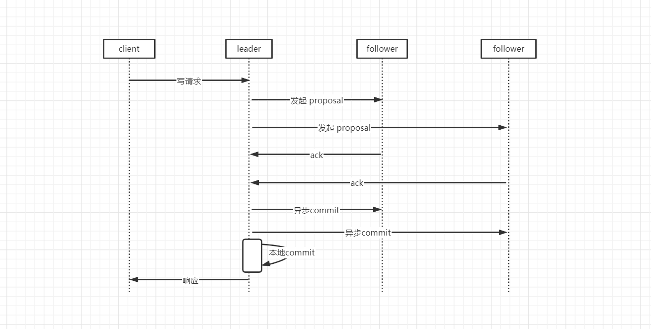 如果集群中其它的节点收到了写请求都会转发给 Leader 由 Leader 来统一发起