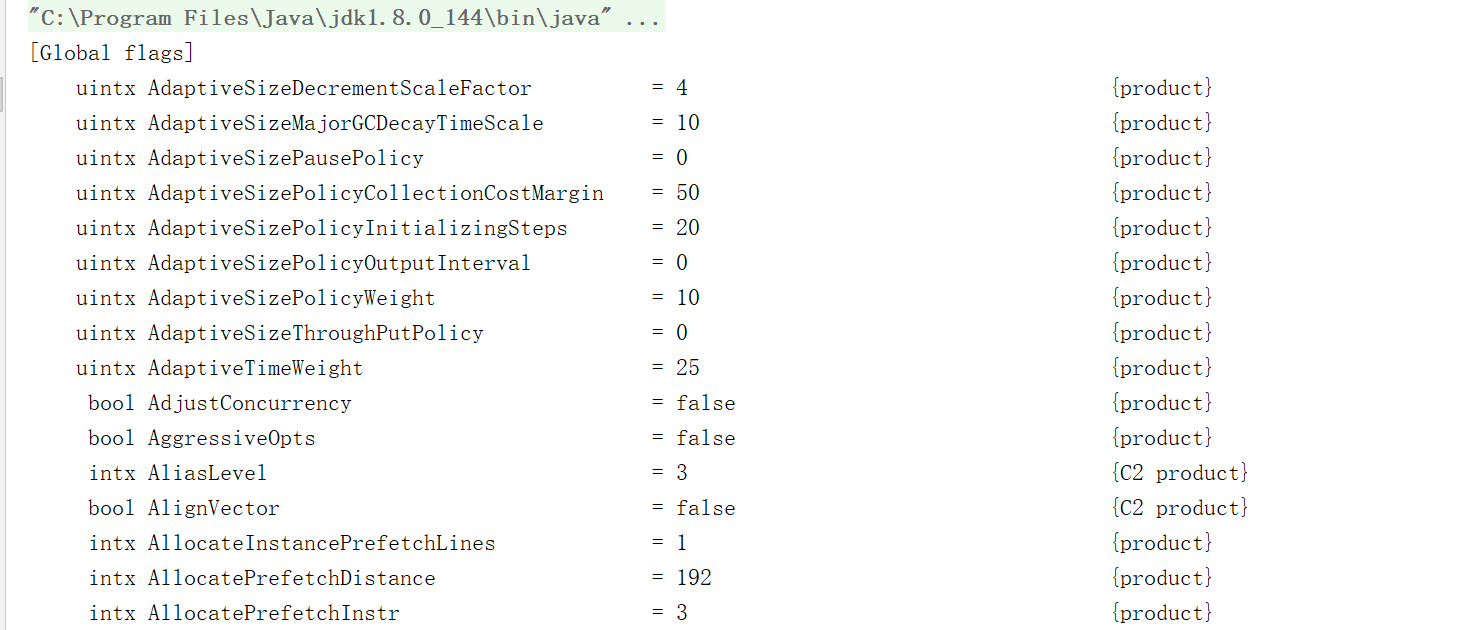 例:-XX:PrintFlagsFinal参数可以输出所有参数的名称和其对应的值