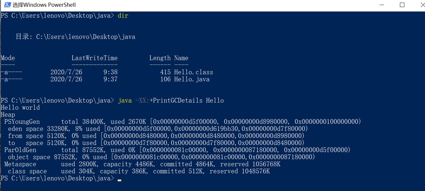 class space used 571K, capacity 596K, committed 640K, reserved 1048576K3.1.3 -XX:+PrintHeapAtGC
