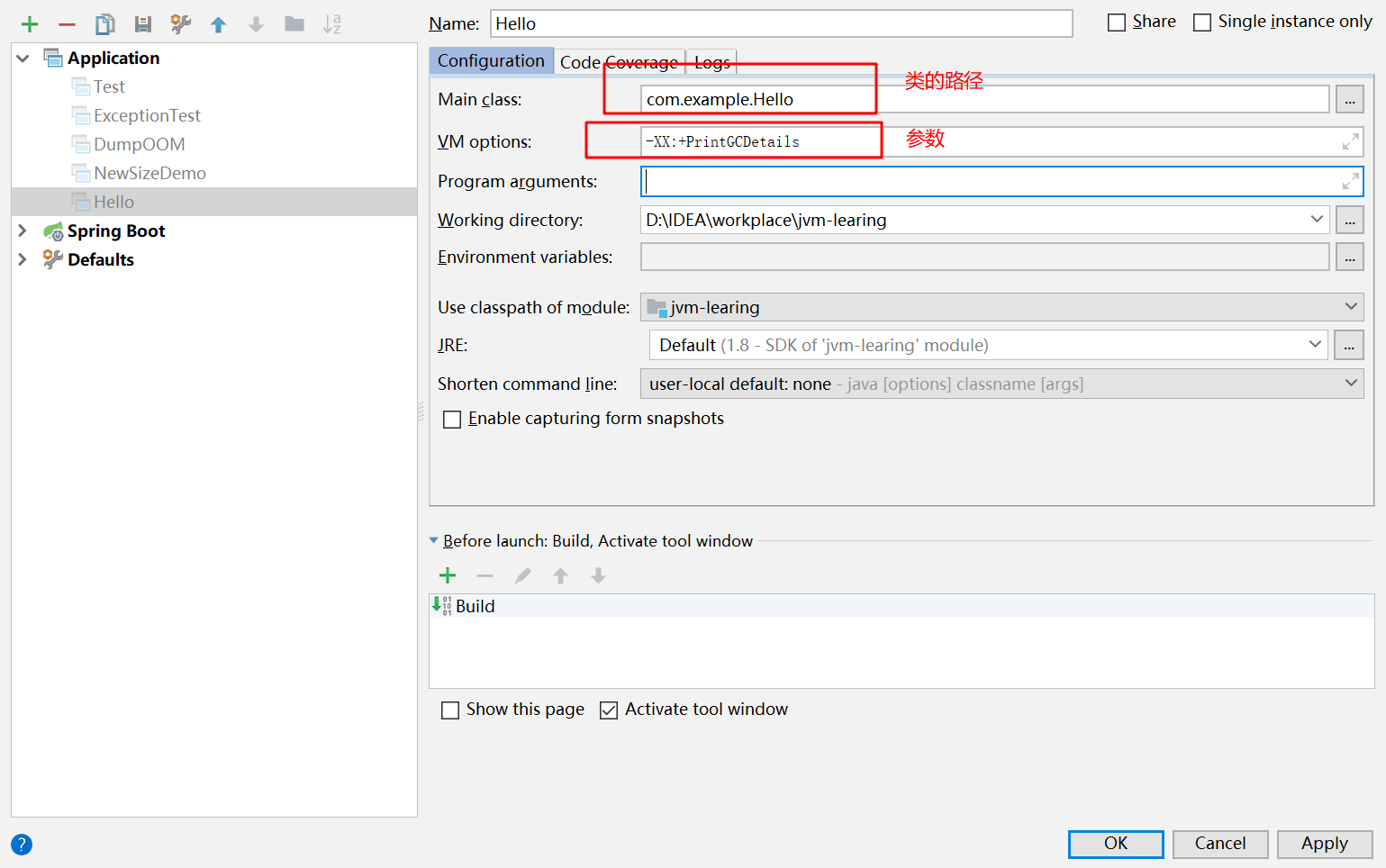2.1 使用Java命令时设置参数