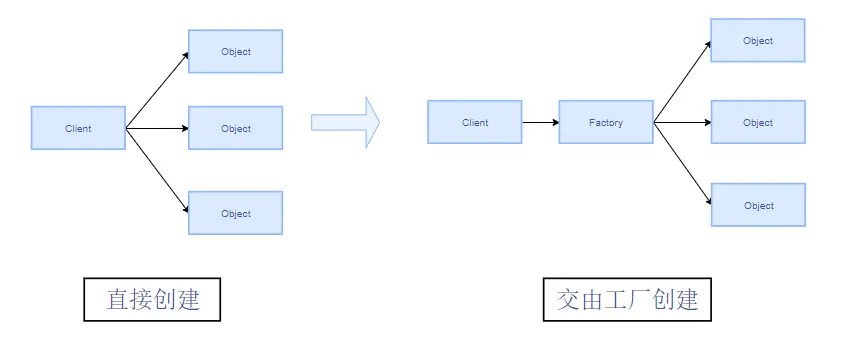 工厂类模式特点 : 不直接依赖,实现了解耦,将变化装移到工厂,如果需要修改实现或者创建方式只需要修改工厂类代码