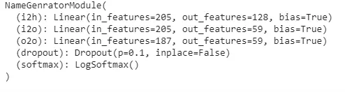 output, hidden = NameGenratorModule(category_tensor, input[0], hidden)