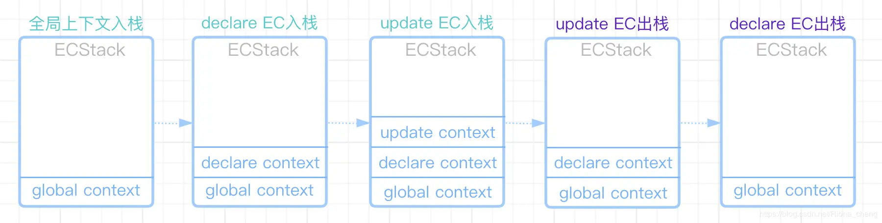 下面是上方用例中的执行上下文对应的进出栈流程示意图: