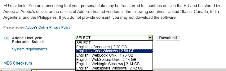 (1) Of course the Adobe Livecyle ES is not for free. You must buy license from Adobe. This blog is written based on a trial version called “JBoss (window version)”, which you can download freely from Adobe website below.