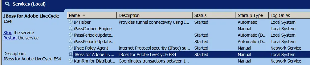 (4) Configure JBoss server as a service in OS. You can find how to do this in document in path “C:\Adobe\Adobe LiveCycle ES4\jboss\bin\README-service.txt”. If you are installing the trial version on your laptop, it is recommended to set the service startup type as “Manual”. Or else every morning when you launch your laptop, you must have a cup of coffee because you can really use it.