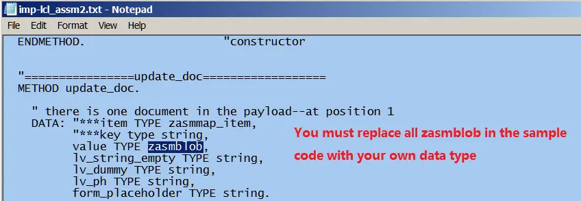 (7) Create the consumer proxy class in ABAP system as usual. Implement the BAdI by copying the code from note attachment. The code could not be directly activated since the generated data proxy used in the code does not exist in your own system. You must manually replace them with your own data proxy.