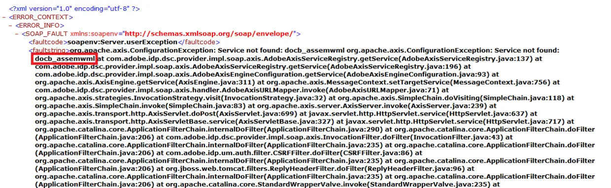 And this error information demonstrates that the requested service “docb_assemwml” could not be found in server side. Either check in server side whether the status of it is running or check the name of service is correct.