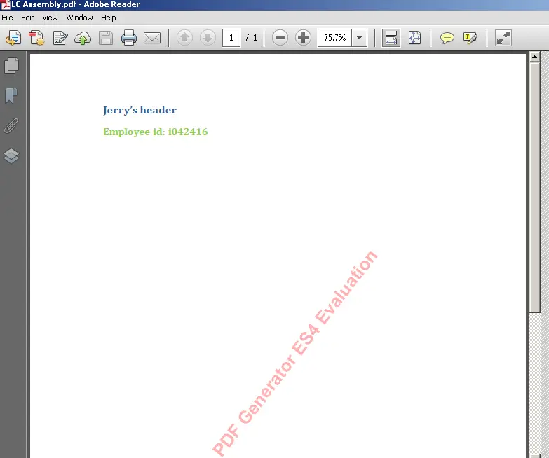 You can also save the file locally and open it with any PDF reader. If the PDF is converted via trial version of Adobe Livecycle ES, you will see the corresponding water mark on it.