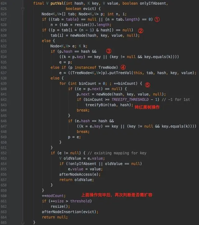 当了解了以上的变量和用途后,接下来看下put()方法的具体实现: