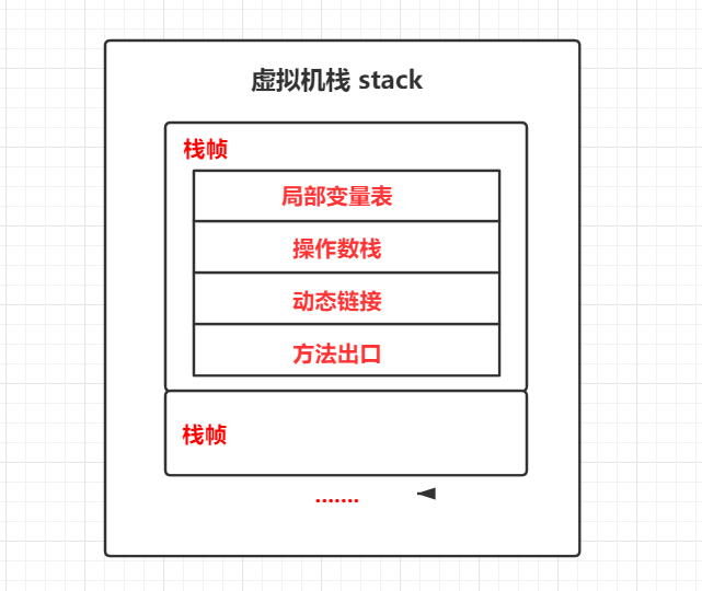 - java方法的执行对应虚拟机栈的一个栈帧,用于存储局部变量、操作数栈、动态链接、方法出口等