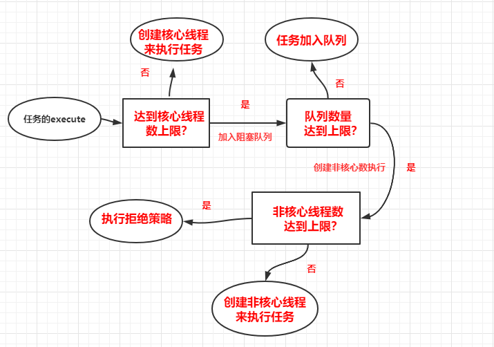 - plan A:任务的execute,先判断核心线程数量达到上限;否,则创建核心线程来执行任务;是,则执行plan B