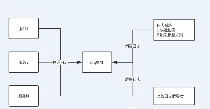 业务系统将日志先发送到mq中,后面由其他消费者订阅进行消费。日志量比较大的,对mq的要求也比较高,可以选择kafka,业务量小的,也可以选取activemq。