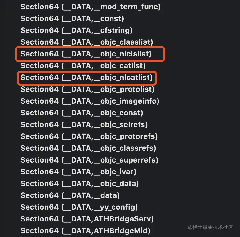 const section *nonLazyCategory = GetSectByNameFromHeader((void *)mach_header, "__DATA", "__objc_nlcatlist");