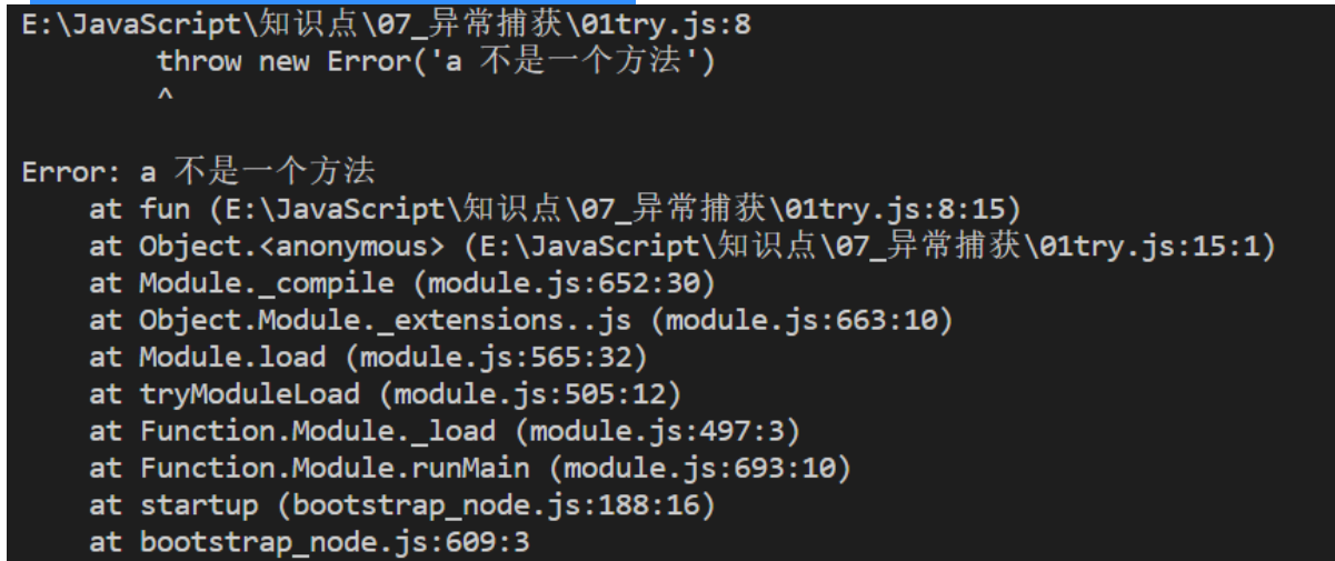 // throw new Error('a 不是一个方法'); // 带堆栈信息